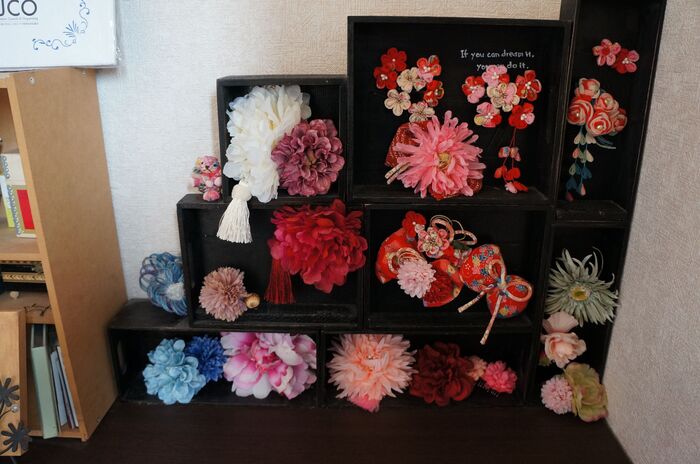 最近は、暮らしニスタで知り合った方のご依頼で、娘さんの成人式の髪飾りも手作りしました。