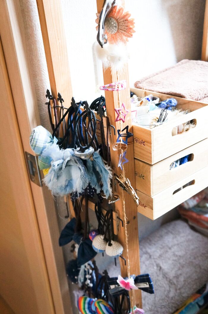 ご自宅の洗面台横には、かわいい手作りの髪飾りがたくさん収納されていました