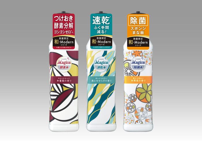 新登場した『Magica 和-Modern』シリーズは、“日本らしさ”をテーマに、「やわらかな心に」「清らかな自然に」「豊かな恵みに」をパッケージと香りで表現した3タイプがラインナップ。