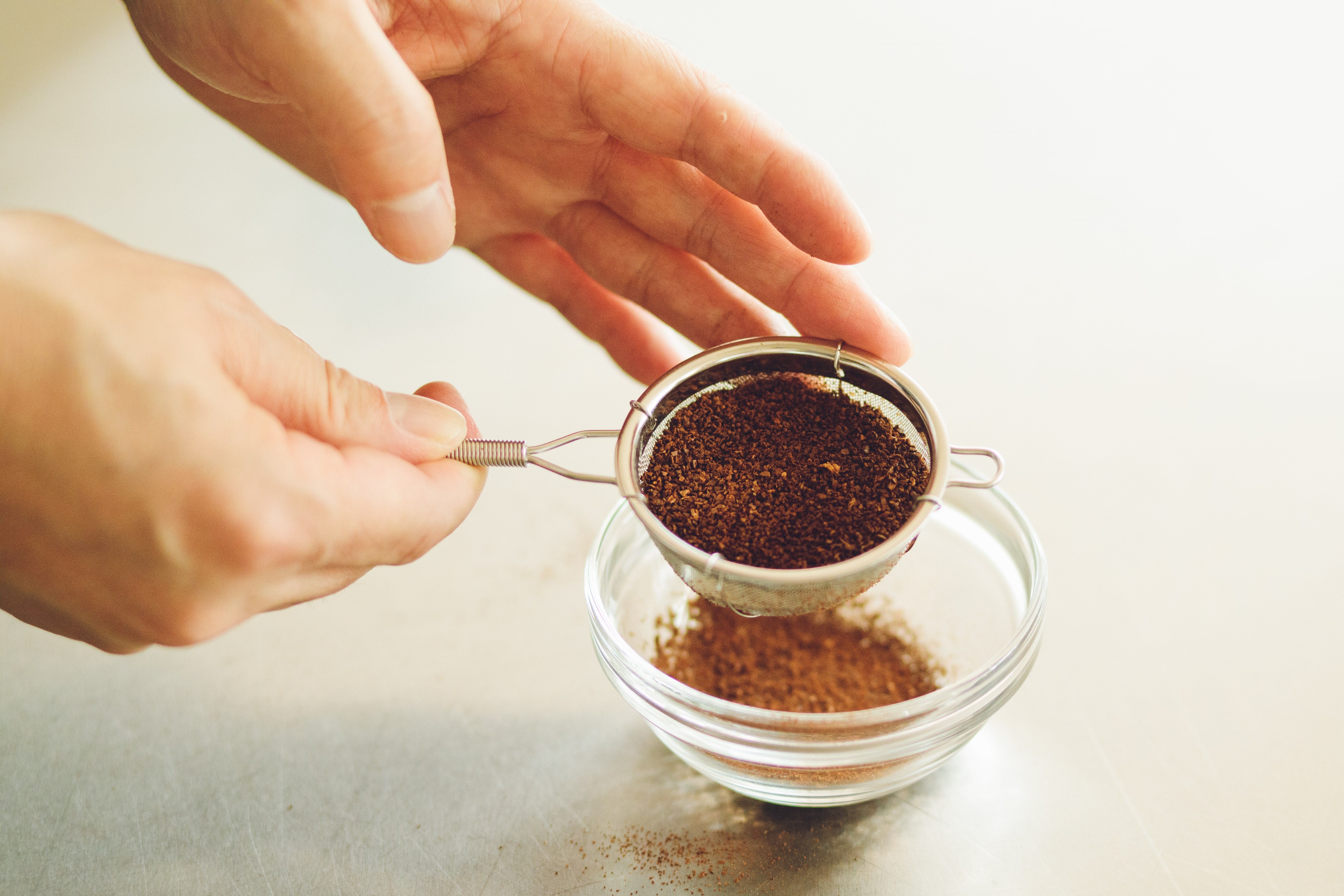 「茶こしを使って微粉を落とすと、いつものコーヒーが少し違った味わいになりますよ」
