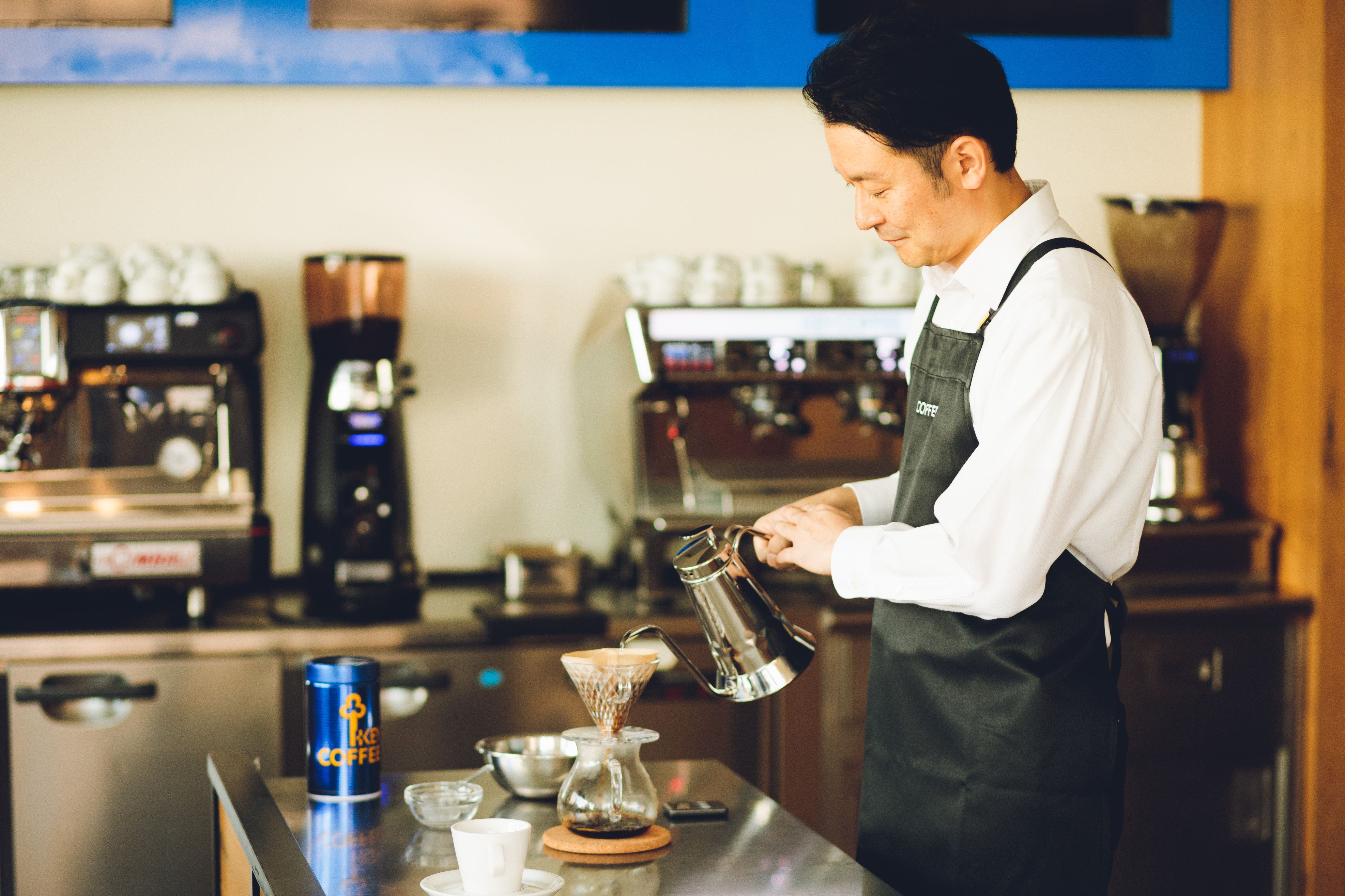 キーコーヒーでは1955年からコーヒー教室をスタート。ハンドドリップの基本を学びたい初心者から、バリスタやお店の開業を目指すプロ志望の方まで、これまで20万人以上が受講したという歴史ある教室です。