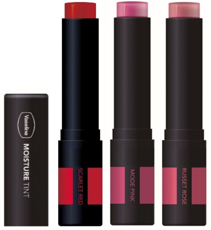 ●『ヴァセリン モイスチャーティント スカーレットレッド/モードピンク/ラセットローズ』各内容量3g/無香料/890円(編集部調べ)+税