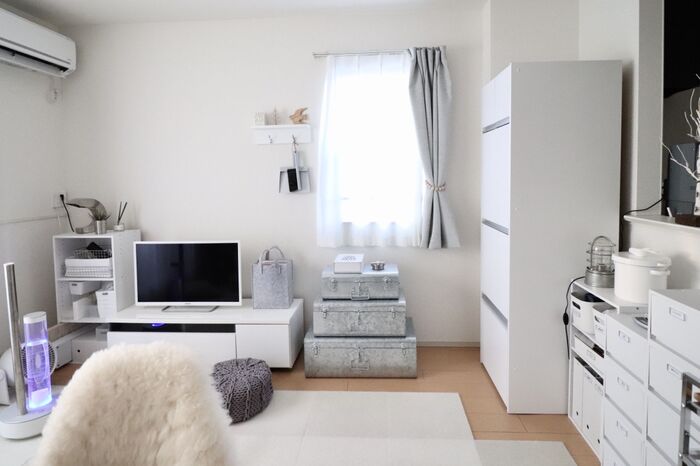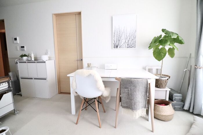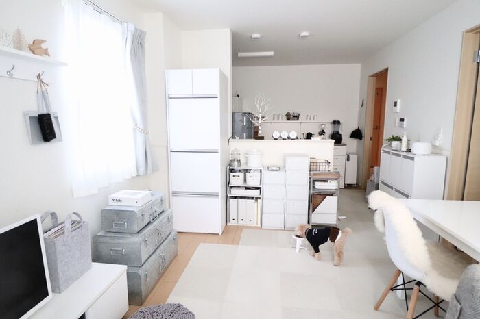 リビングはまだ未完成なのだそう。「もっとモノを減らしてから、どうするか決めようと思ってます。主人とルイくんと3人で長く過ごすので、安全でくつろげる空間になるように心がげています」