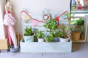 ちなみにご自宅はかなりスッキリしていて、お嬢さん3人が喜びそうなちょっぴりカントリーテイスト。「ぜんそくやアトピー持ちの子がいるので、ものを少なめにして、掃除をしやすくすることは欠かせません。そんなインテリアにグリーンをさしてあげると、空間にみずみずしさを与えてくれるんです」。