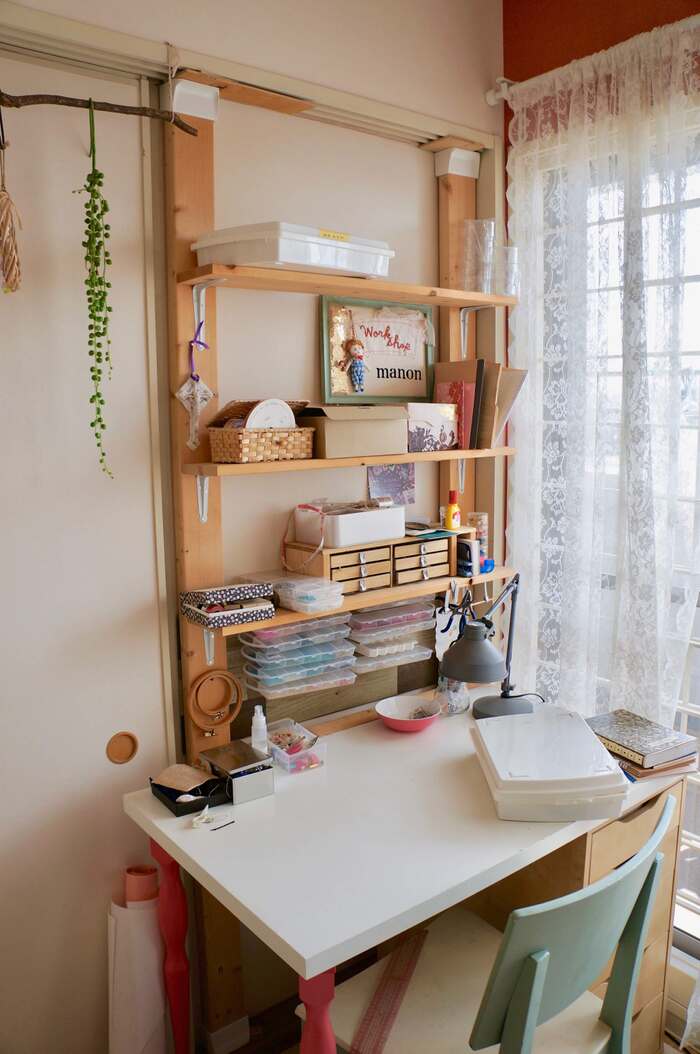 作業用のデスク。1年半くらい使うことがなかったので、かなりすごいことになっていたそう。