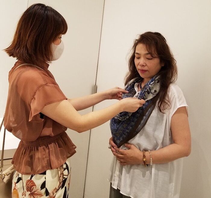 今までは、その傷を隠すために嫌々スカーフをしていたけれど、セミナーに参加したおかげでスカーフをすることが楽しいと思えるようになったと言ってくださいました。