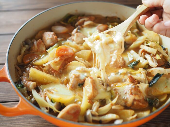 野菜たっぷりのタッカルビ。家族みんな辛いものやアジアンテイストなものが好きなのだそう。