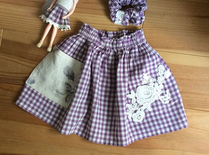 ↑自分のお母さんが作ってくれたようにお嬢さんにも手作りのものを。写真は、お嬢さんのために作ったリカちゃんとお揃いのスカートとシュシュ。