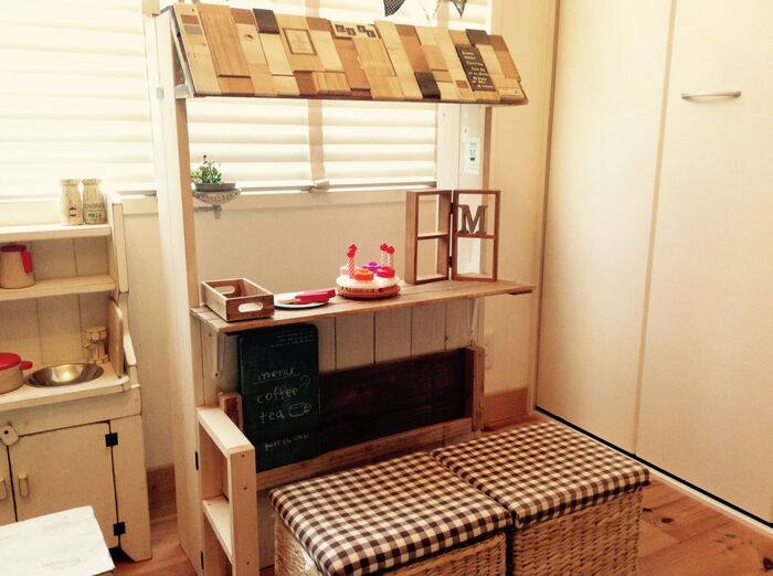↑子供たちのためにDIYした折り畳み式のお店屋さん。