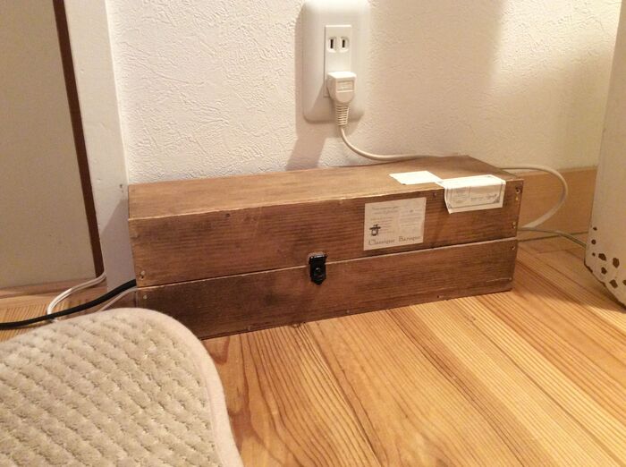 そういえば、母からもらったそうめん箱を使ってコンセントタップのカバーを作ったなと思って、それをそのまま載せてみたんです。