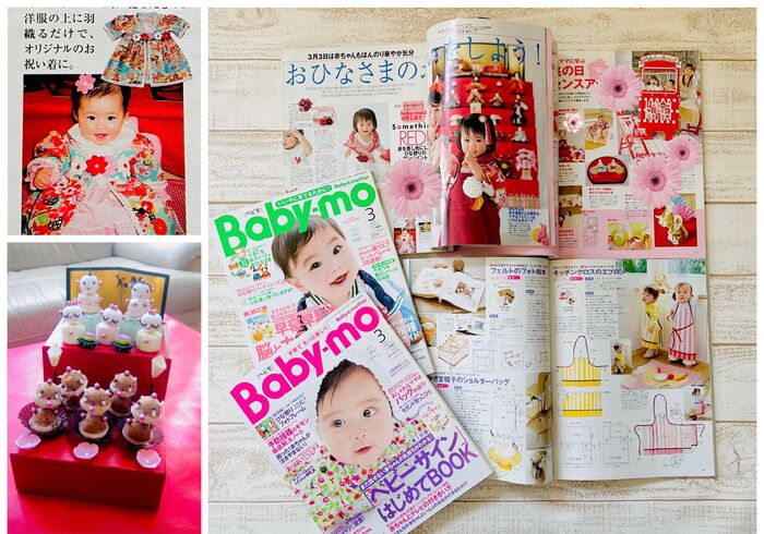 自分が作ったものを編集部のかたに見ていただけるチャンスかもしれない、と思い、子どもの初節句のときに作ったローブとお菓子ひな壇の写真を付けてポストに投函しました。それが幸いなことに編集部のかたの目にとめていただき、作品作りの企画監修としてのお仕事をいただく機会にも数回恵まれました。自分からいろいろなところに出向く機会が少なくなっていたときに、こういう形でできる仕事があるんだというのは新しい発見でした。