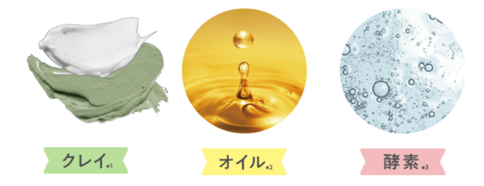 メイクや汚れは、“クレイ(※1)×オイル(※2)×酵素(※3)”のトリプルパワーでしっかりオフ。毛穴汚れや古い角質までキレイに落とします。
