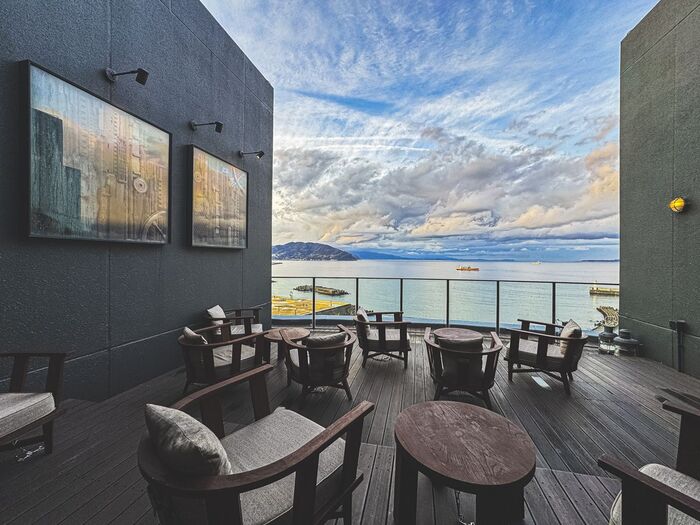 湯上がり処はサンブエナデッキというアウトドアスペースにつながっているから、外で景色を楽しみながらグビっといきたいところです。