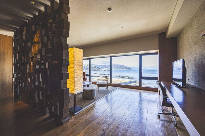 全室オーシャンビューの客室は、アートな空間