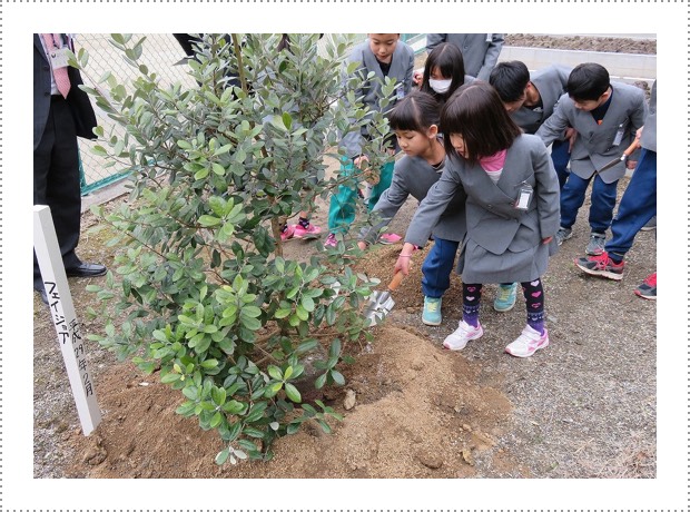 その1「小・中学校での緑化活動」全国の小・中学校や特別支援学校などで、植樹やビオトープづくりなどを通じ、子どもたちが自然に触れる機会を増やしているよ。