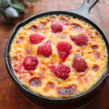 真っ赤ないちごが焦げ目のついたカスタードに映えておいしそう!下準備はなんと3分でOK。カスタードの材料を混ぜてスキレットに流したら、いちごを乗せて焼くだけという手軽さが魅力。これならお菓子作りが苦手でも作れそうですね。銀賞。