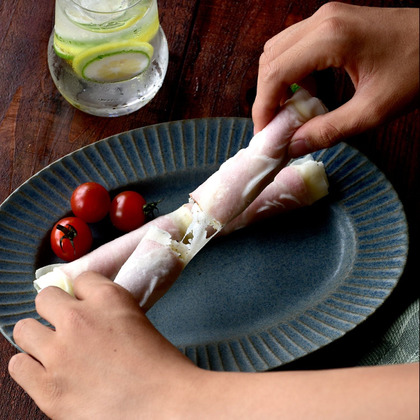 春巻きの皮が余ったら、こんなふうに使えるんですね!濡らしてレンチンしたところに具をのせて巻くだけ。ささっと出せるけど、ちょっと凝っている感じも◎。家飲みのときに、大人にも子供にもウケそう。金賞を贈ります!