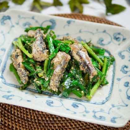 ★3分以内で完成!材料4つで超簡単!満足!なもう1品【ニラとオイルサーディンの胡麻和え】★by SHIMAさん