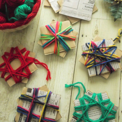 少ない材料なのに、毛糸や紙の組み合わせでいろいろなデザインが作り出せるのも魅力的。ツリーに吊るすほか、ガーランドのようにしてもよさそう。お子さんと一緒に作っても楽しそうですね!ほっこりしていて、なんだか温かい気持ちになれるクリスマス飾り、お見事です。