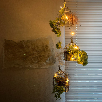 1人めの銀賞受賞者は、ナチュラルテイストのおしゃれなモノづくりが印象的なcesarioさん。今回の作品は、「鳥かごとドライフラワーとランプという組み合わせ方がとっても上手」「すべて100均で手に入る材料で、こんなにおしゃれなインテリアに仕上げたセンスはさすがです」「ショップで売っていてもおかしくないレベル。これ、ほしい!」という評価が。使うドライフラワーによって、ライトの明るさや影の落とし方が変わり、部屋の表情を変えてくれるのも面白いですね。おめでとうございました!
