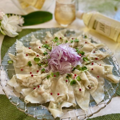 おしゃれな料理がお得意の*yuko*曽布川優子さん。こちらのあんかけワンタンも、盛り付けや色どりが素敵ですね。パーティー料理にもぴったりです。ほたてとえびの淡白な味わいに、セロリと大葉が絶妙なアクセントに。