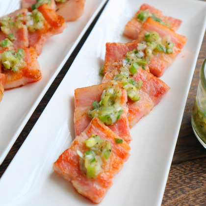 ●ネギ塩といえば牛タンを連想しますが、厚切りベーコンだったら手に入りやすいですし、お子さんも喜びそう!(編集部O)