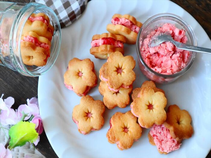 ●ピンクがちらっと見えるお花クッキーがかわいすぎます♡花芯部分を小さな型でくり抜くというアイデアもなるほど!と思いました。今回はバレンタイン&ホワイトデーがテーマではありますが、お花見にも持っていっても喜ばれそうですね!(編集部Y)