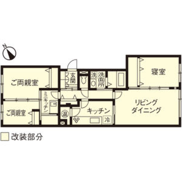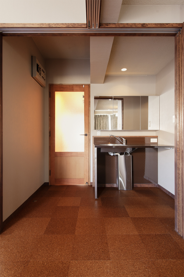 マンションを二世帯住宅としてリフォームした例。親世帯スペースの入り口に、洗面台としても使えるミニキッチンを設置しました。