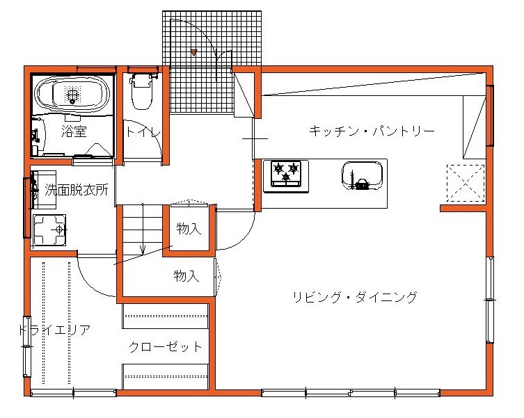 家事動線が短いということは、家事に割く時間も短くなるということ。家事は毎日行なうものですので、小さな時間でも積み重ねると大きくなります。施主さんにも大変喜ばれたプランです。