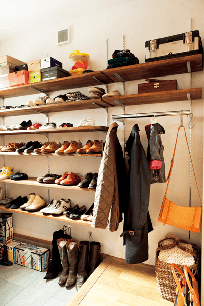 そして、「シューズクロークに入っていると便利なもの」だけを選び出します。外物置や小屋裏収納など、ほかの収納スペースに入れておけばいいものは外してください。こうして中身を厳選したら、それに合わせてシューズクロークを計画します。