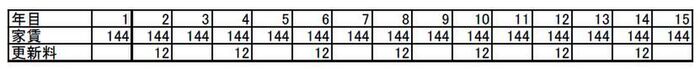 賃貸アパートは、2年ごとに賃料の1カ月分の更新料がかかる見積もりです。