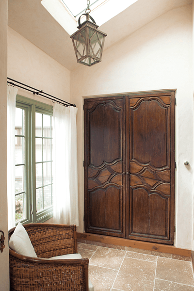 土間の収納の扉に、重厚なアンティークの扉を施工。