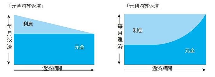 毎回の返済額の元金にあたる部分を一定にする返済方法です。最初のうちは返済額が高くなりますが、元金をどんどん返していけるので、そのぶん利息が早く減り、総返済額を少なくできます。