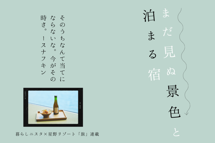星野リゾートとコラボした旅連載。日本中のまだ見ぬ景色と、ご当地を存分に満喫できる宿を紹介していきます。ぜひ旅のプランの参考にしてください。ときどき暮らしニスタさん限定の宿泊券プレゼントもありますよ♡