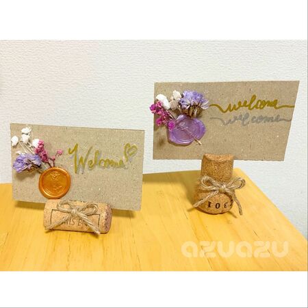 ワインコルクとダンボールdeウェルカムカードスタンド