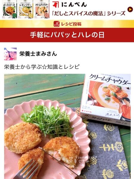 受賞したレシピはこちら→「だしとスパイスの魔法クリームチャウダーコロッケ」https://ameblo.jp/mamiko12070324/entry-12530022312.html