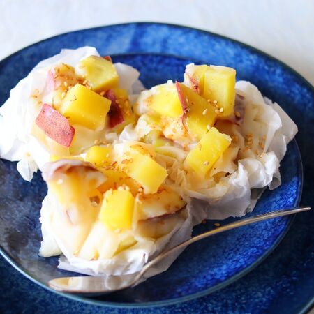 さつま芋(紅はるか)を使ったシンプルで美味しい甘酒入りの米粉蒸しパンです。