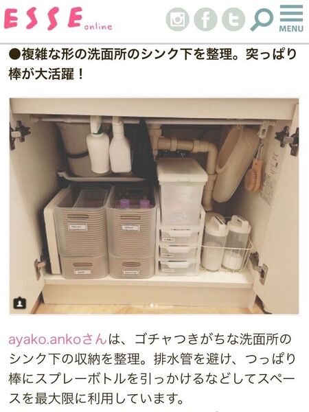 主婦に人気の雑貨「ESSE」のオンラインで、我が家の洗面所のシンク下収納を掲載していただいてます?