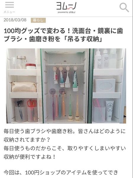 ライターをしているヨムーノさんで、本日歯ブラシと歯磨き粉収納についての記事を掲載しています。