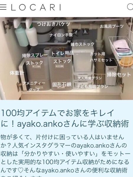 公式アンバサダーをさせていただいているLOCARIさんで、この度100均グッズを使った我が家の収納の数々を記事として掲載していただきました。