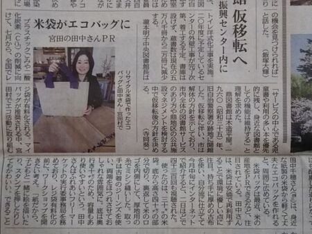3月10日(火)の中日新聞、南信面で「米袋バッグ」を取り上げていただきました。