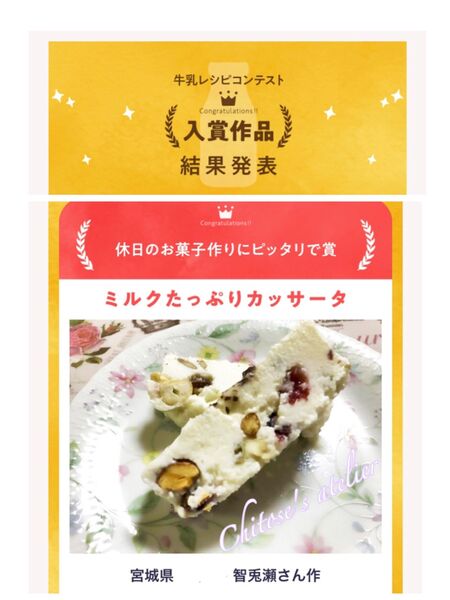 この度せんだいタウン情報machico主催の『牛乳の日レシピコンテスト』で昨年に引き続き2度目の入賞になります。