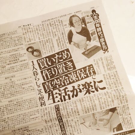 私のお勧めしている冷凍作り置きの「自家製レトルト」や真空シールして食材を保存する方法、セカンド冷凍庫などを取材いただき、料理教室の生徒様の活用方法などについても丁寧に書いていただきました。