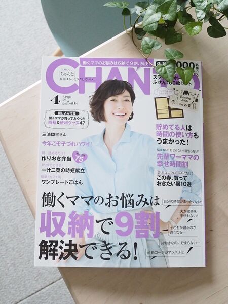 雑誌CHANTO4月号の巻頭特集「働くママのお悩みは収納で9割解決できる!」に掲載していただきました。