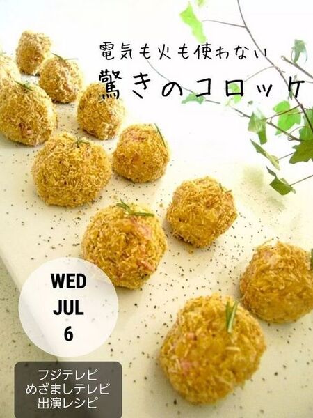 フジテレビ「めざましテレビ」に「電気も火も使わない驚きのコロッケ」のレシピ出演し