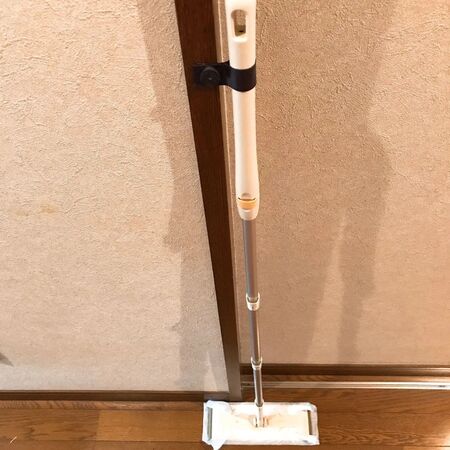 磁石とマグネットを使って冷蔵庫に貼ることでクイックルワイパーが倒れないように工夫しました。