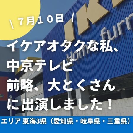 イケア好きが講じて、2022年7月10日放送の中京テレビ(日本テレビ系列)・前略、大とくさんに出演させていただきましたー!