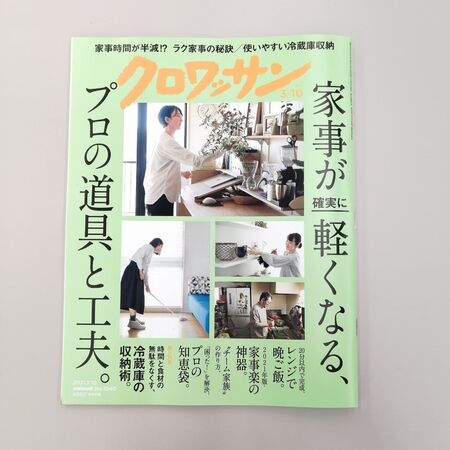 12月10日発売の雑誌クロワッサン(マガジンハウス:2019年12月25日号)の企画『これさえあれやる気になれる!掃除を楽にするモノとアイデア。』内でシンプルライフ研究家マキさんのリビングのオススメお掃除用品として「そうじの神様 おそうじ手袋」をご紹介頂きました!