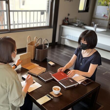 当店の紙バンド製品ブランド「With U」の【池田ブランド認定品】「手織り手帳カバー」「手織り名刺入れ」も紹介されます。