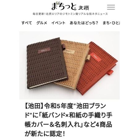 【池田ブランド】に認定された、紙だけで出来たサステナブルな「手織り手帳カバー」「手織り名刺入れ」について記事にしていただいております。